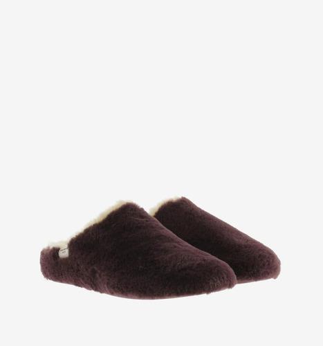 Zapatillas de casa abiertas para mujer fabricadas en España en pelo suave. Interior en contraste. Etiqueta lateral de victoria. Presentan una plantilla interior recubierta también de pelo que aporta confort y calidez. Cómoda suela de caucho vulcanizado.
