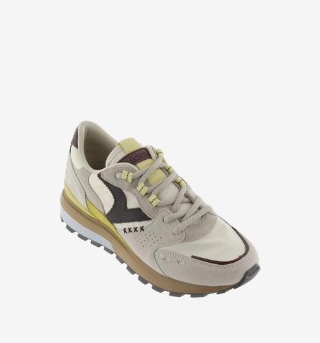 Sneakers VICTORIA para mujer confeccionadas en nylon con piezas en serraje al tono y detalles sintéticos. Cierre mediante cordones redondos al tono. Suela bicolor y patín con grabados del logo en relieve antideslizante que favorece un mejor agarre. Estabilizador en el talón. Incluyen además una plantilla extraíble ergonómica y muy confortable.
